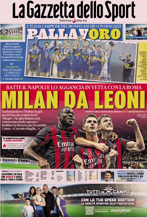 Buongiorno a tutti i nostri lettori: iniziamo la giornata, come di consueto, con le prime pagine sportive in edicola.