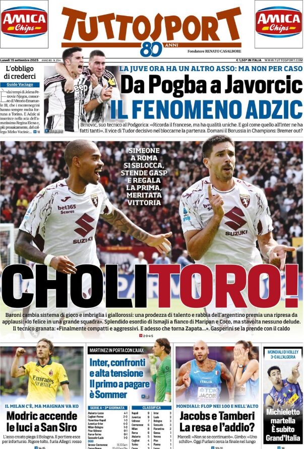 Un saluto a tutti i nostri lettori: cominciamo la settimana, come di consueto, con le prime pagine sportive in edicola.