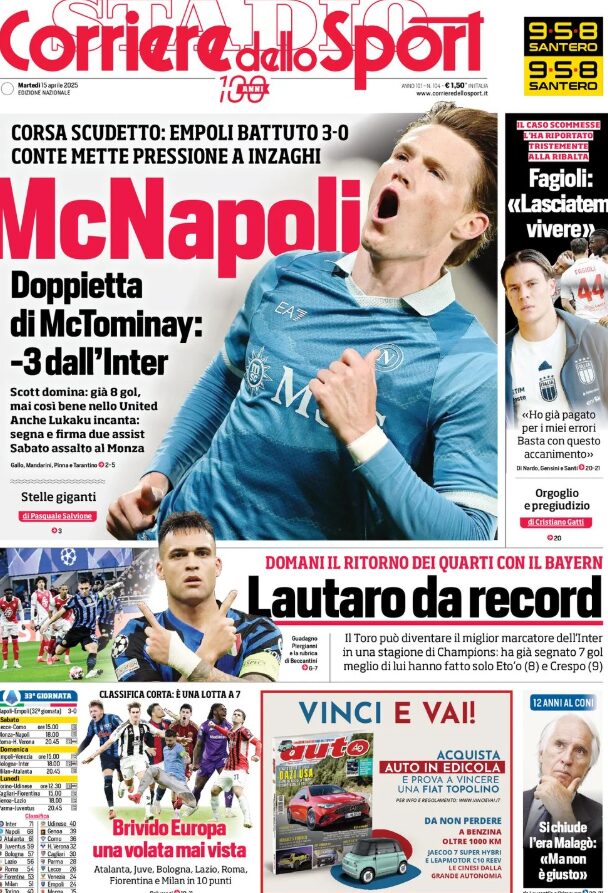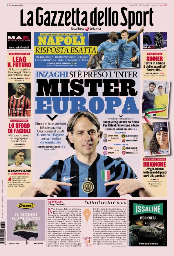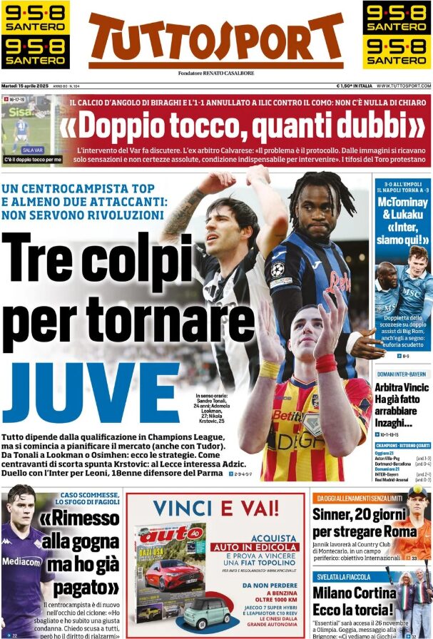 Un saluto a tutto i nostri lettori! Iniziamo il martedì, come di consueto, con le prime pagine sportive in edicola.