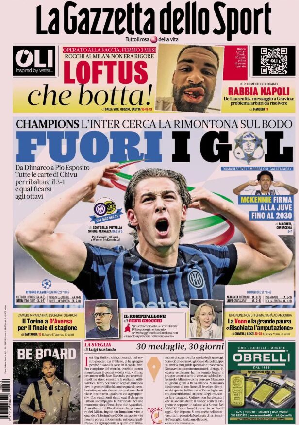 Un saluto a tutti i nostri lettori: iniziamo la giornata, come di consueto, dalle prime pagine sportive in edicola.
