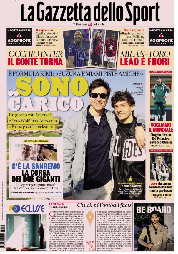 Un saluto a tutti i nostri lettori: cominciamo la giornata, come di consueto, con le prime pagine sportive in edicola.