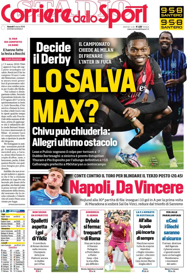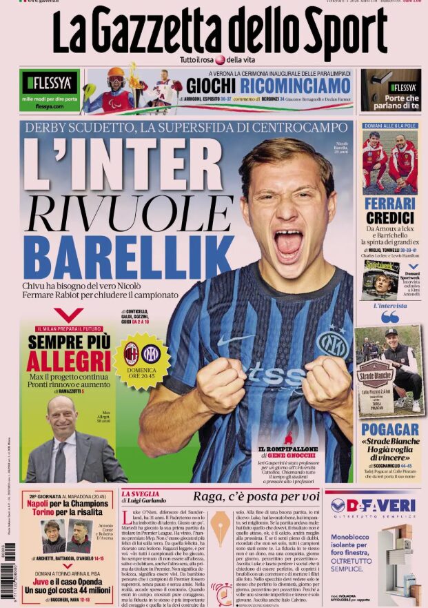 Un saluto a tutti i nostri lettori: cominciamo la giornata, come di consueto, con le prime pagine sportive in edicola.