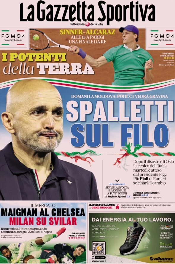 Un saluto a tutti i nostri lettori: chiudiamo la settimana, come di consueto, con le prime pagine sportive in edicola.