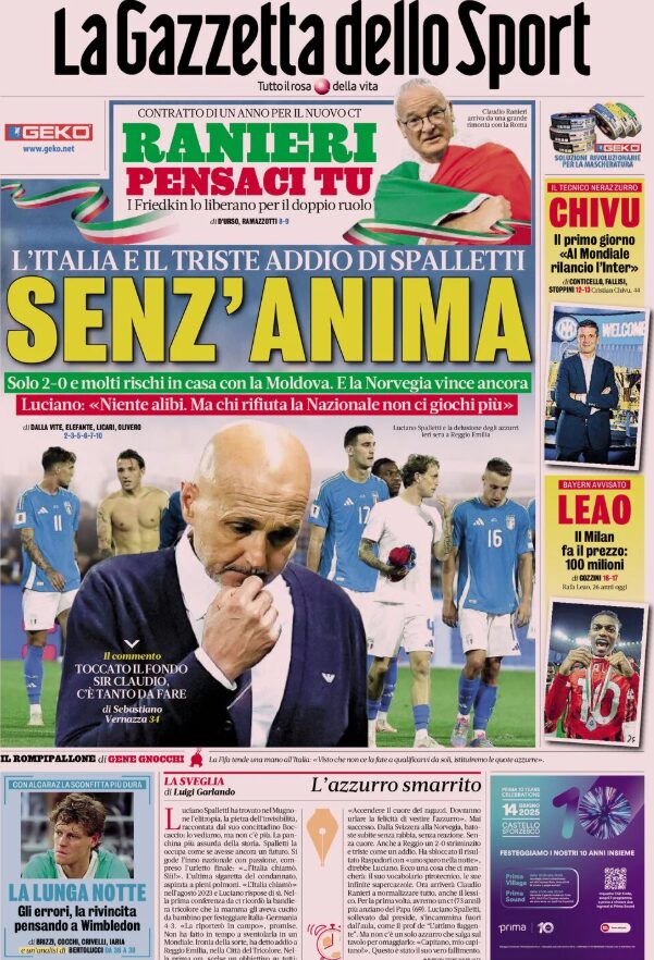 Buongiorno! Ecco le prime pagine sportive