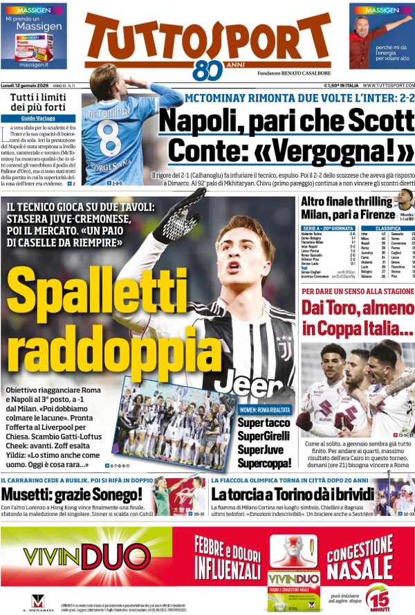 Un saluto a tutti i tifosi rossoblù: iniziamo la giornata, come di consueto, con le prime pagine sportive in edicola.