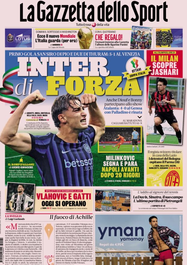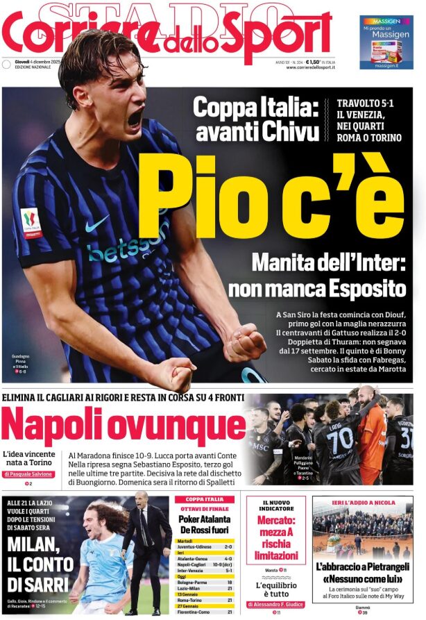 Un saluto a tutti i nostri lettori: ecco le prime pagine sportive in edicola oggi....