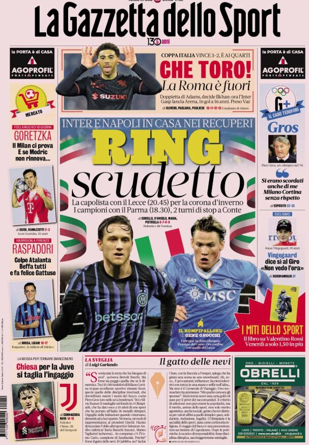 Un saluto a tutti i nostri lettori: ecco le prime pagine sportive in edicola oggi....