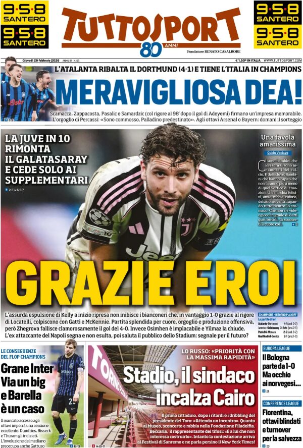 Un saluto a tutti i nostri lettori: iniziamo la giornata, come di consueto, con le prime pagine sportive in edicola.