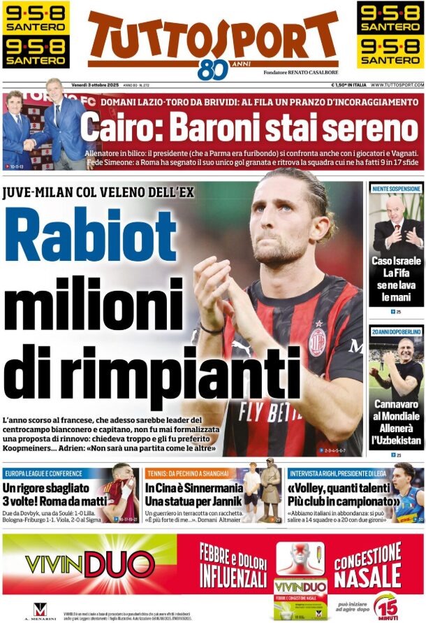 Un saluto a tutti nostri lettori: iniziamo la giornata, come di consueto, con le prime pagine sportive in edicola.
