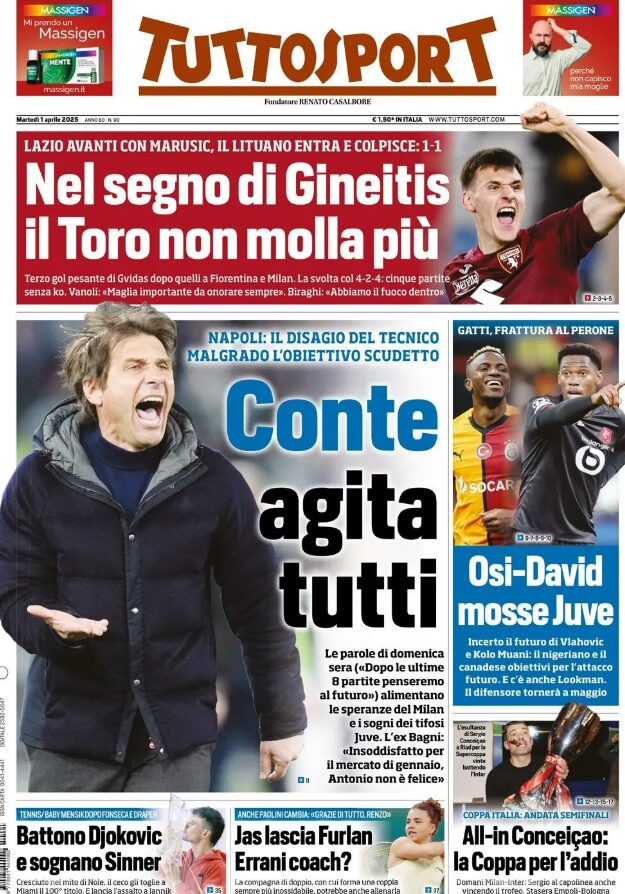 Un saluto a tutti i lettori di CalcioTorres: cominciamo il martedì, come di consueto, con le prime pagine sportive in edicola.