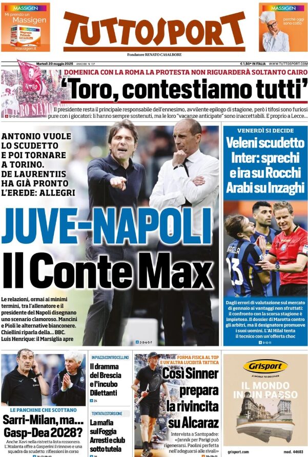 Un saluto a tutti i nostri lettori: ecco le prime pagine sportive in edicola oggi....