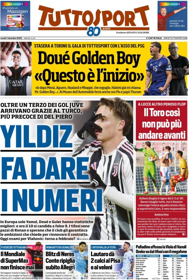 Buongiorno, tifosi rossoblù: le prime pagine sportive