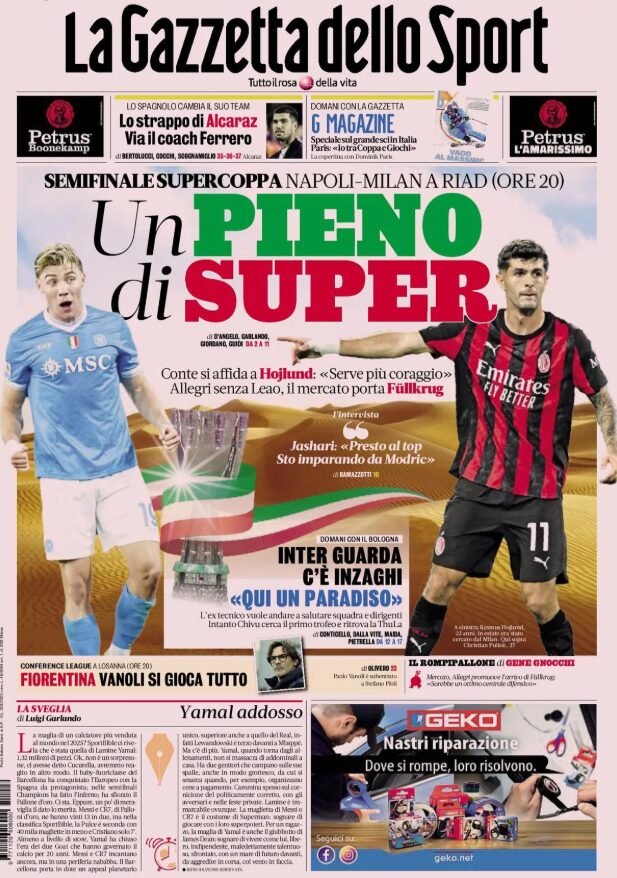 Buongiorno, tifosi rossoblù: le prime pagine sportive