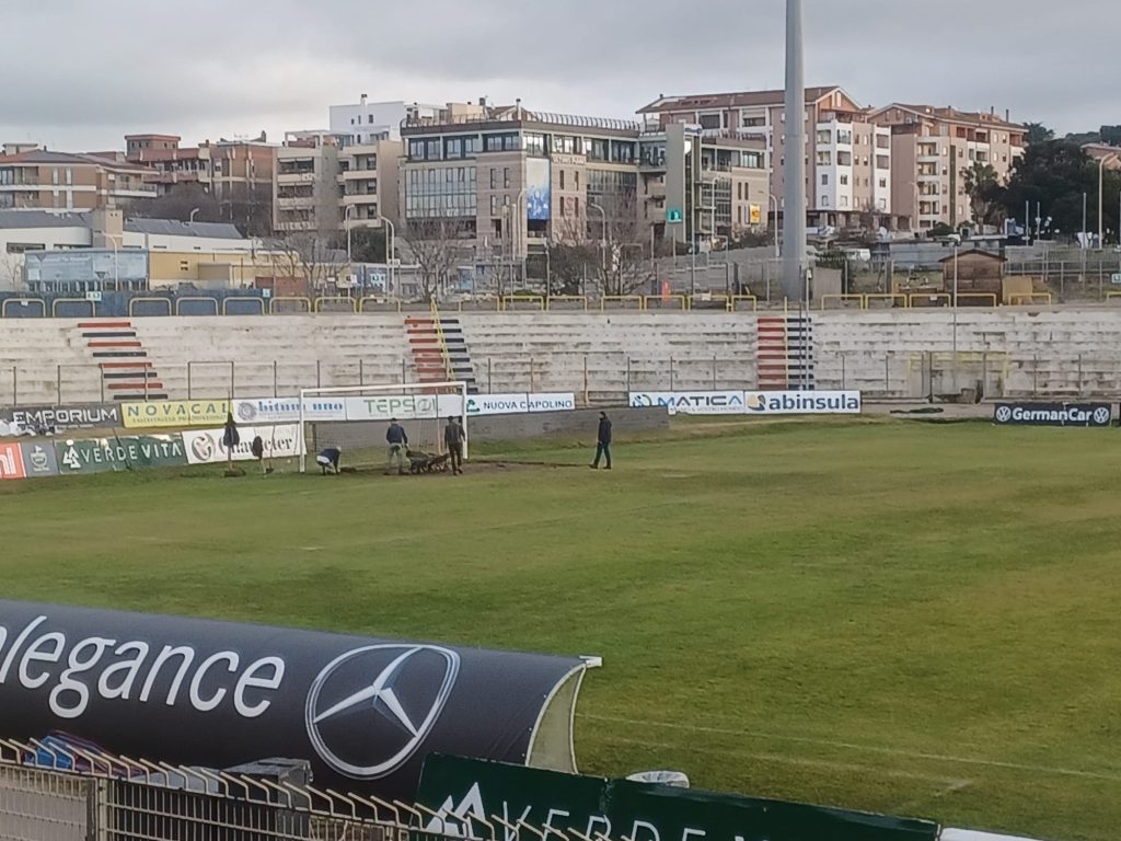 Nella conferenza stampa odierna, prima della gara di domenica contro il Pescara, il tecnico rossoblù ha risposto con un laconico: “Speriamo!“, alla domanda su eventuali migliorie del manto erboso. Il nostro inviato Domenico Mussolino ha scattato delle immagini sui lavori in corso allo stadio.